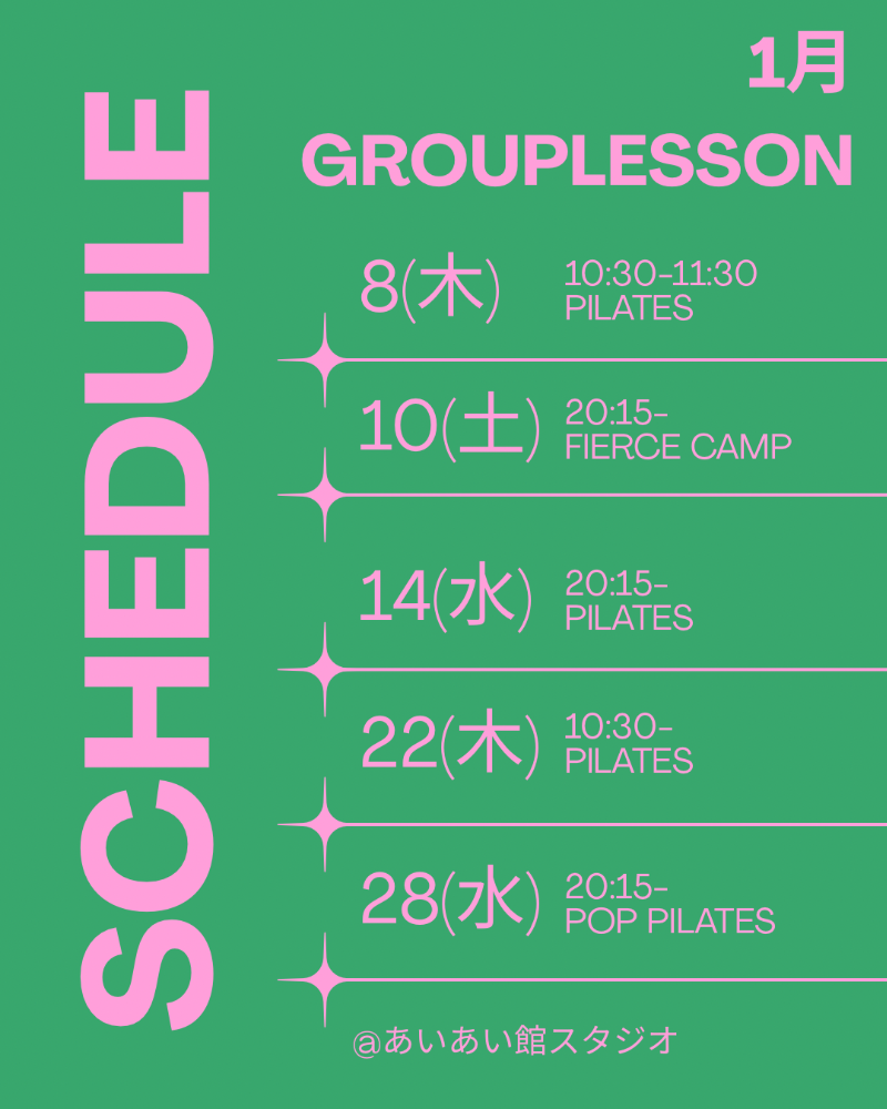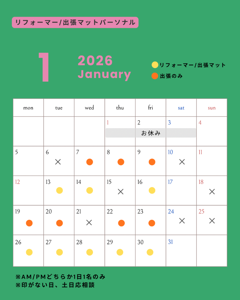 PILATES/POPPILATES/FIERCECAMP/筋膜リリース/産前産後ピラティスからお選び下さい。